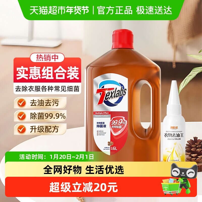 泰克斯乐除菌液除油王组合1.6L+80ML衣物家居除菌衣物除油污