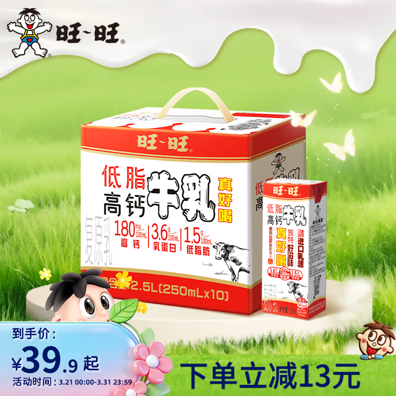 旺旺低脂高钙牛乳250ml*10盒 儿童学生营养早餐奶整箱礼盒装 [250ml*10盒](25年10月产)