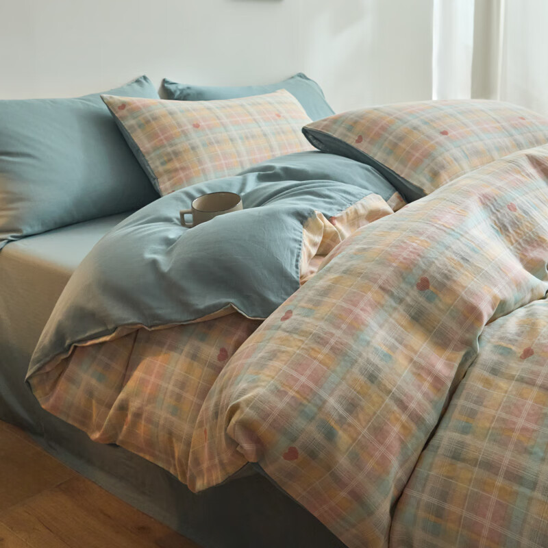AIDLI床上四件套A类全棉双层纱纯棉新疆棉被套床单被罩双人套件 爱的密语 1.5/1.8m床 床单款 被套200*230cm