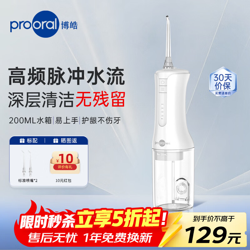 博皓(prooral)电动冲牙器便携牙齿洗牙器冲洗器家用洁牙器水牙线正畸牙垢清洁器 送朋友生日礼物 F40 象牙白