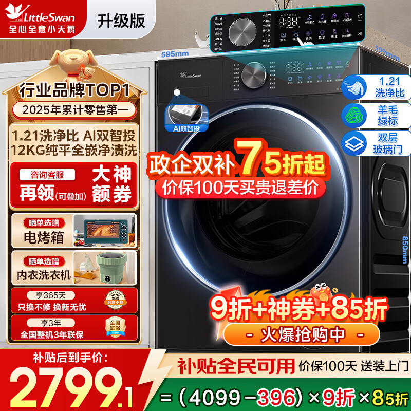 小天鹅(LittleSwan)滚筒洗衣机 小乌梅3.0机皇 全自动家用12公斤水魔方1.21/1.32洗净比纯平全嵌AI双智投 洗烘/洗脱 升级版【非烘干】1.21洗净比