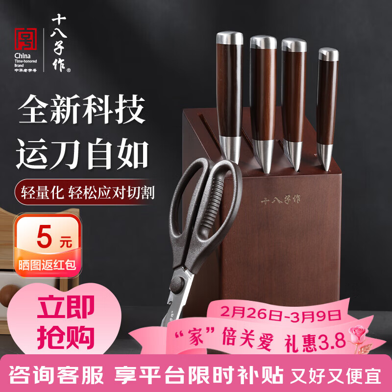 十八子作厨房刀具套装厨具水果刀切片刀砍骨 十八子菜刀家用 福船·追月星槎套刀组合 6件套