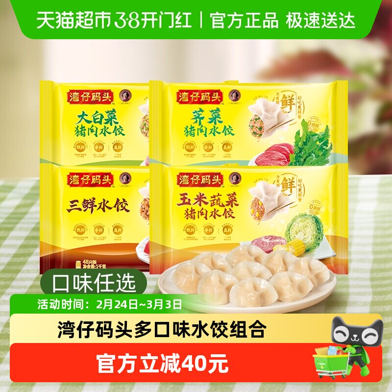 湾仔码头大白菜玉米三鲜芹菜荠菜猪肉水饺冷冻速食方便早餐组合