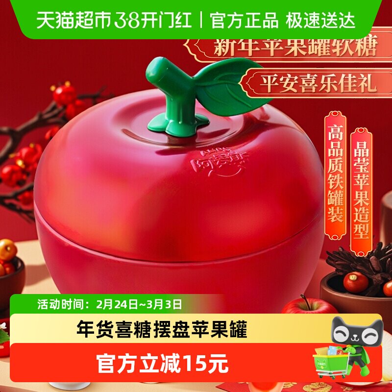 阿麦斯4D苹果爆汁软糖春季出游儿童糖果休闲零食聚会摆盘苹果铁罐