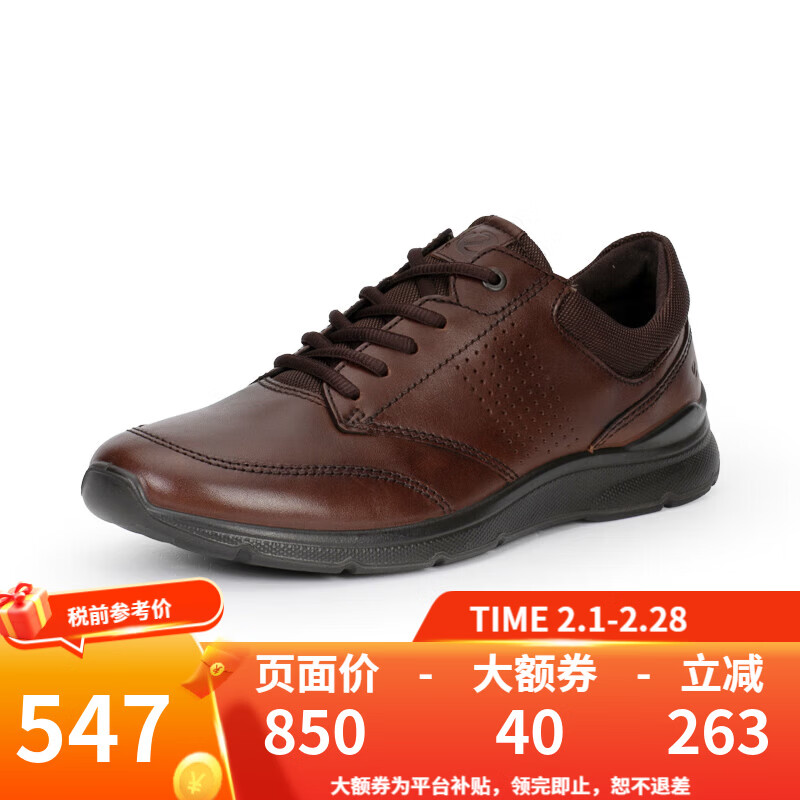 爱步(ECCO) Irving 运动鞋男系带休闲鞋 简约舒适真皮健步鞋 511734-男款-55738-可可棕 42