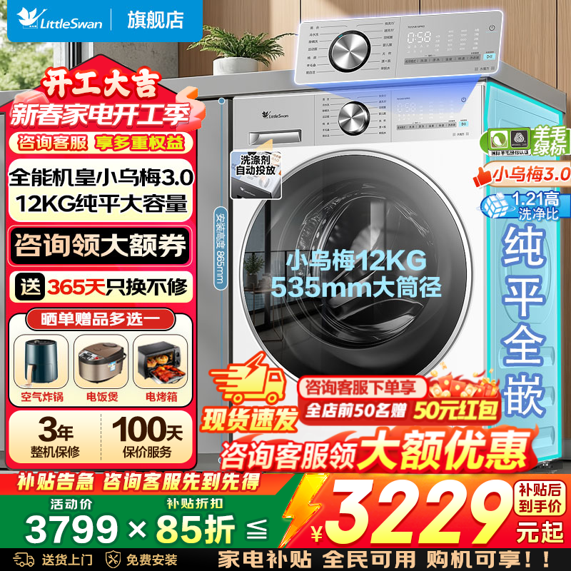 СÌì¶ì£¨LittleSwan£©¹öͲϴÒ»úÈ«×Ô¶¯¼Òµç²¹Ìù СÎÚ÷3.0 ¼ÒÓÃˮħ·½ Ï´ÍÑ/Ï´ºæÒ»Ìå´øºæ¸É 10/12¹«½ï´óÈÝÁ¿ ÒԾɻ»Ð ¡¾12¹«½ïСÎÚ÷3.0¡¿ ¹öͲ µ¥Ï´VE10PRO