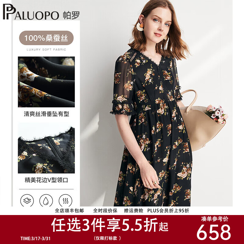 ÅÁÂÞ£¨PALUOPO£©Ïļ¾ÕæË¿Á¬ÒÂȹ100%É£²Ï˿Ůװ¸ß¶ËvÁìСË黨ÇáÉÝС¸ö×ÓÆøÖÊ´©´î ºÚÉ« L (165/88A)
