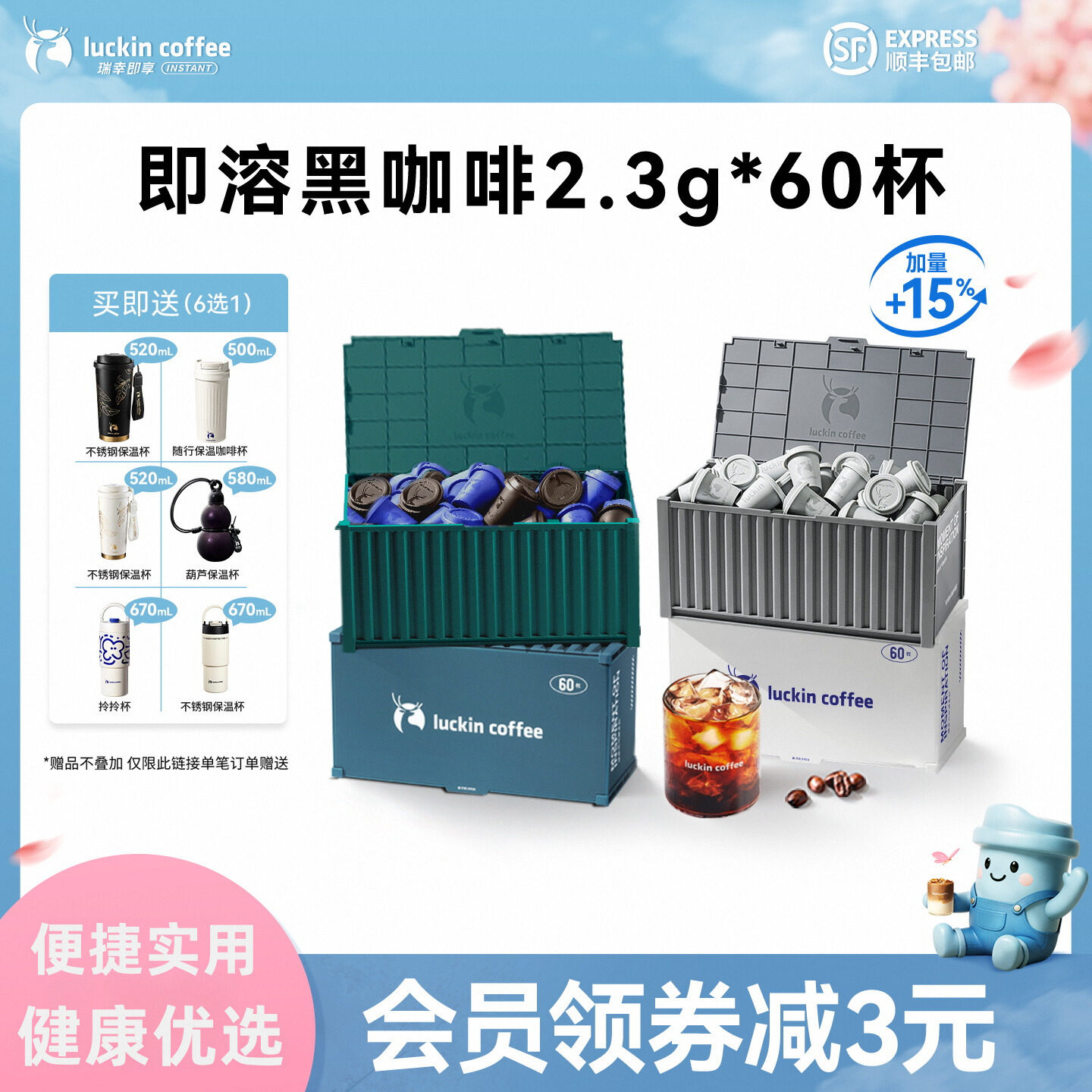 瑞幸咖啡冻干速溶咖啡粉生椰拿铁冰美式0糖黑咖啡囤货装60杯