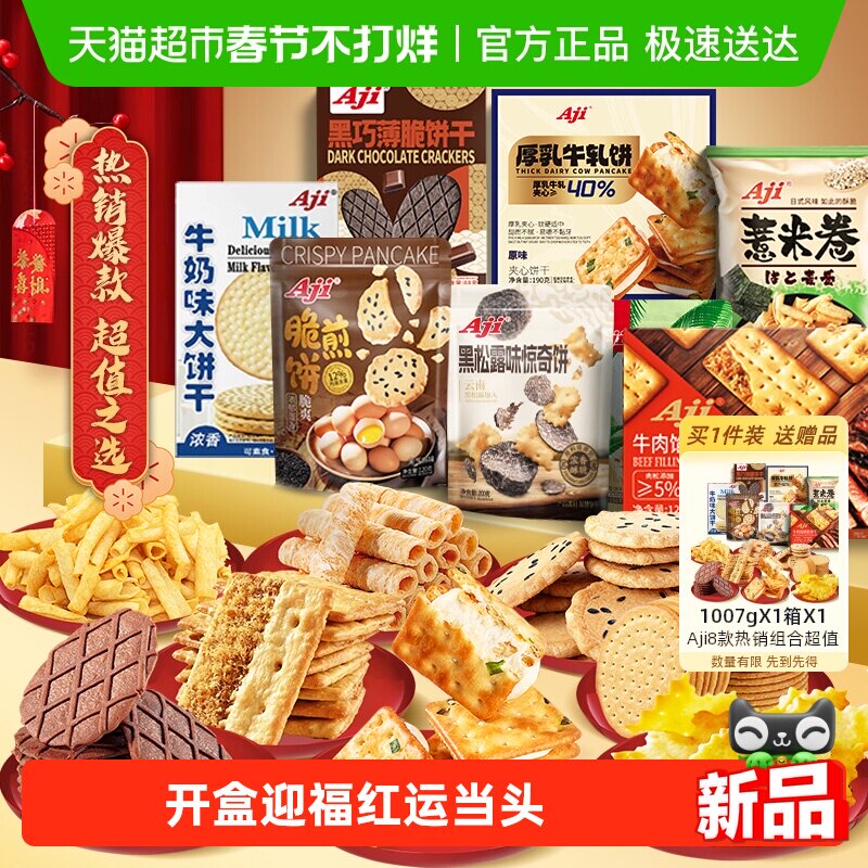Aji超值多口味组合年货节送礼盒蛋卷黑松露牛轧糖咸味饼干零食
