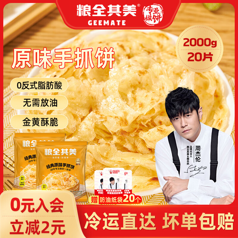 粮全其美6层酥黄油手抓饼 原味家庭装儿童营养早餐食品半成品速食 经典原味手抓饼100g*20片