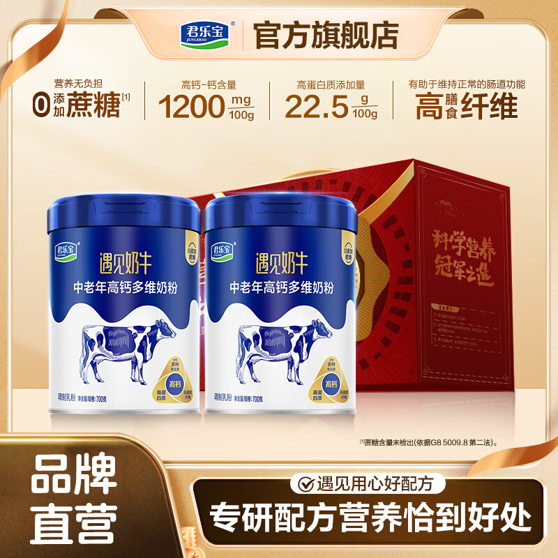 君乐宝全家成人高钙营养奶粉0添加蔗糖中老年送礼营养奶粉 中老年遇见奶牛700克*2听(赠礼盒)