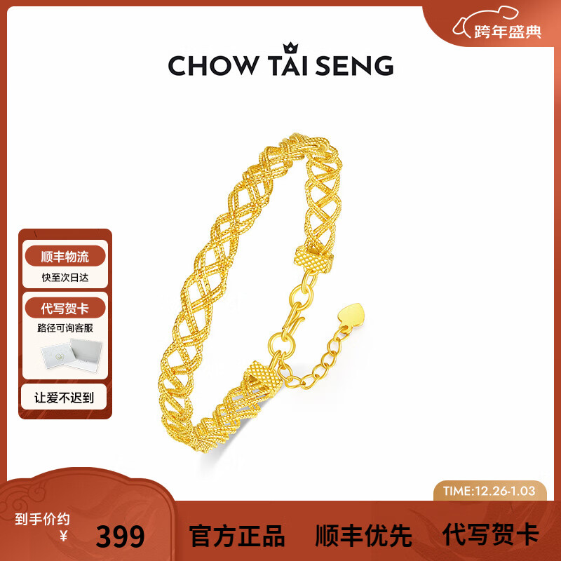 周大生【周大生高定新款】金色手镯S990纯银时尚百搭女手链老钱风礼物 编织手镯