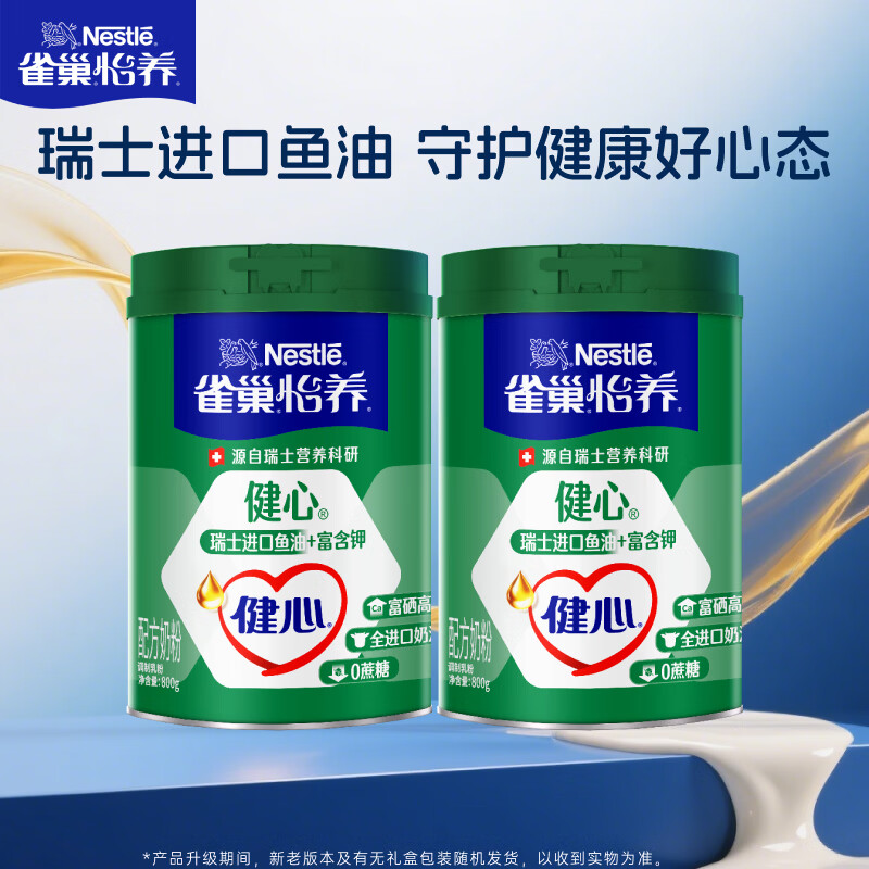 雀巢(Nestle)怡养健心鱼油中老年奶粉高钙850g*2富硒成人奶粉 送礼送长辈