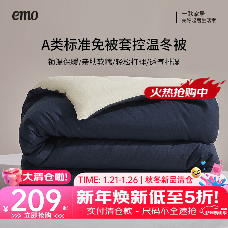 一默被子秋冬大豆纤维被冬被A类抗菌防螨双人加厚褥子深睡控温冬被芯 梦境蓝 丨冬眠被 220*240cm