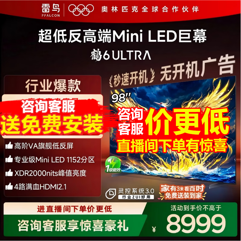 FFALCON雷鸟电视98鹤6 Ultra 25款 98/100英寸 MiniLED 高阶VA 家电国家补贴电视98S595C Ultra 平板电视 98英寸 国家补贴