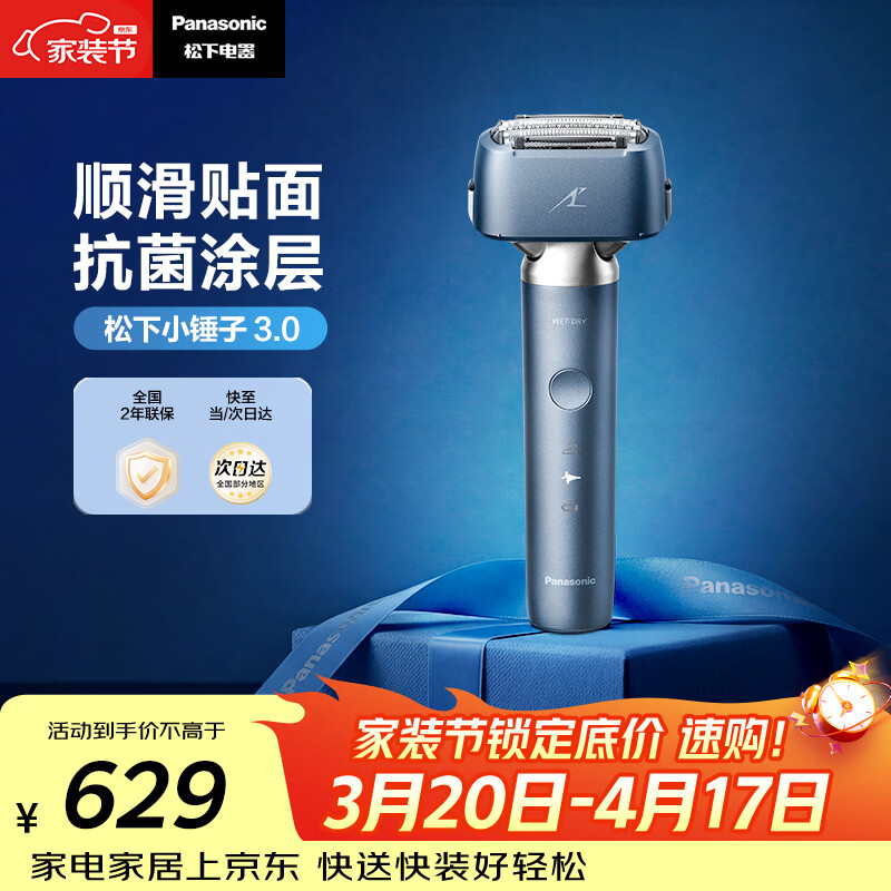 松下(Panasonic)全新小锤子3.0电动剃须刀往复式顺滑双滚轮亲肤便携款刮胡刀Type-c可水洗送男士生日礼物LM36雾蓝
