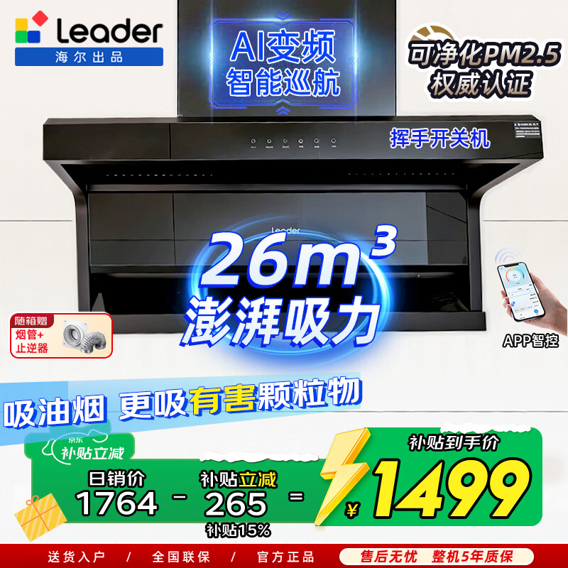 海尔【热销中】抽油烟机大吸力家用顶侧双吸一级能效 以旧换新灶具热水器 26立方统帅Leader F26净烟 【单油烟机】26m吸力-63%用户选