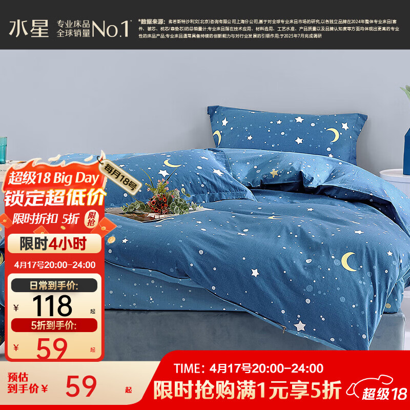 水星家纺集团出品 百丽丝被套单件 100%全棉被套 学生纯棉被罩被套 (100%全棉&北欧简约系列) 星辰 150cm*210cm