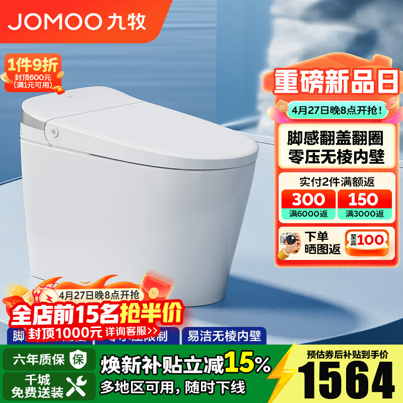 九牧(JOMOO)轻智能马桶无水压限制脚感翻盖翻圈SQ8640-SA-CJM400免费送装