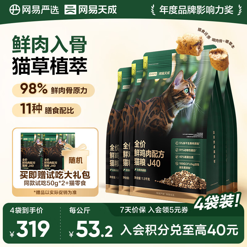 网易严选鲜鸡肉猫粮生骨肉配方宠物主粮幼猫成猫主食级冻干全阶段无谷粮 【4袋装】鲜鸡肉猫粮12斤