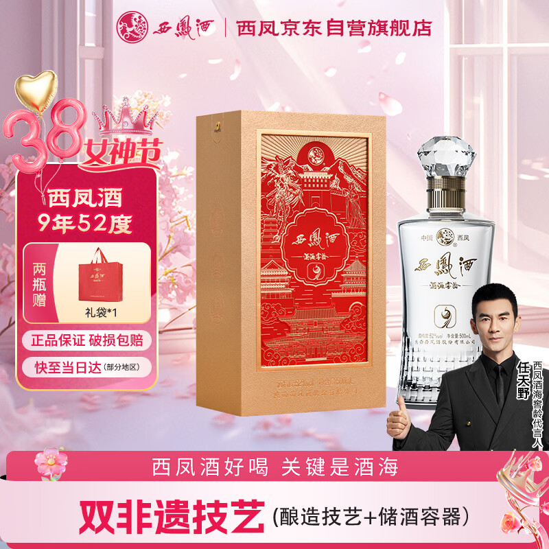 西凤酒 酒海窖龄 9年 52度 500ml 单瓶 凤香型白酒 婚宴喜酒