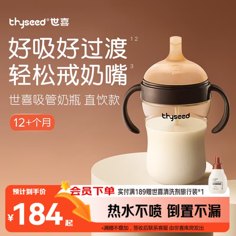 世喜直饮奶瓶1岁以上1-3岁通用吸管杯宝宝婴儿ppsu300ml带重力球手柄