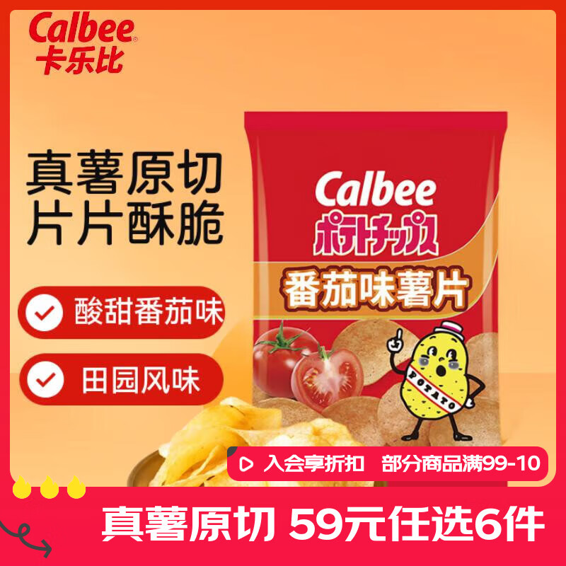 卡乐比(Calbee)薯片 番茄味60g/袋 原切薯条薯片 膨化食品 办公室休闲解馋零食
