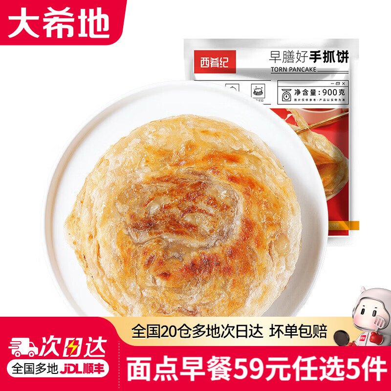 大希地【59元任选5件】烧麦烤肠小笼包煎饼手抓饼水饺子面点早餐半成品 西肴纪手抓饼900g
