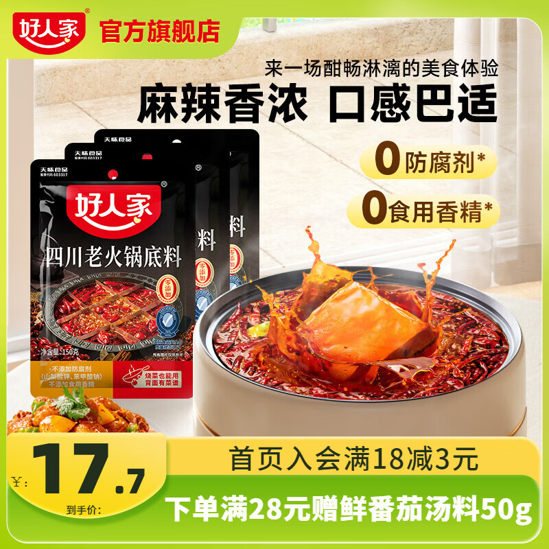 好人家0添加小块装火锅底料 四川老火锅150g*3袋