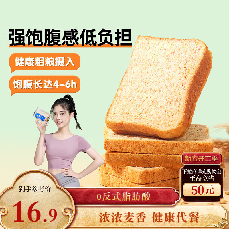 三只松鼠全麦面包1000g 全麦吐司手撕营养早餐代餐零蔗糖零脂健身轻食粗粮