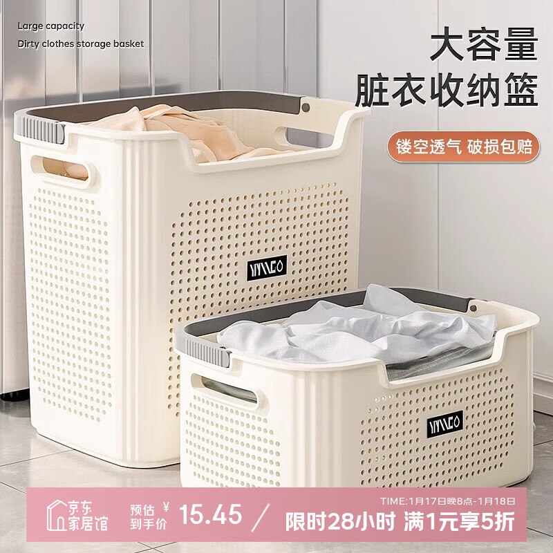 稻草熊大号脏衣篮衣服收纳筐内衣篮脏衣服收纳桶浴室洗澡篮家用收纳篮子 绅士灰小号+大号