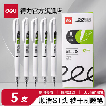 得力(deli)【S08秒干款】S08速干刷题小白笔学生考试按动中性笔ST头签字笔黑笔水笔 【黑色 5支】秒干