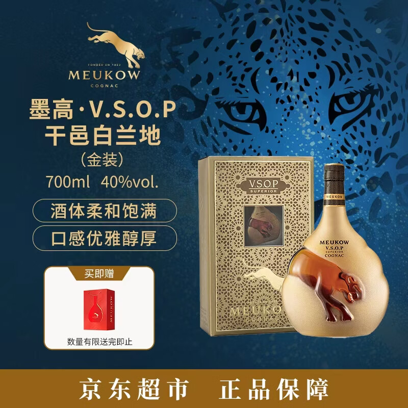 墨高(Meukow)VSOP干邑白兰地(金装)700ml 法国进口洋酒礼盒