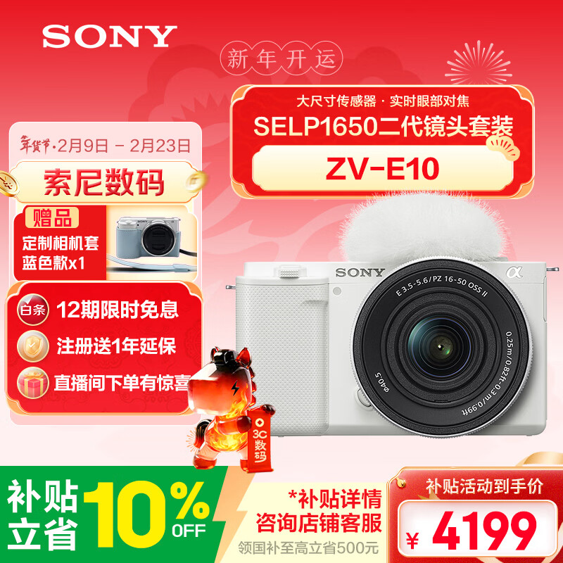 索尼(SONY)ZV-E10K 新升级标准镜头套装 白色 新套机镜头E PZ 16-50mm F3.5-5.6 OSS II