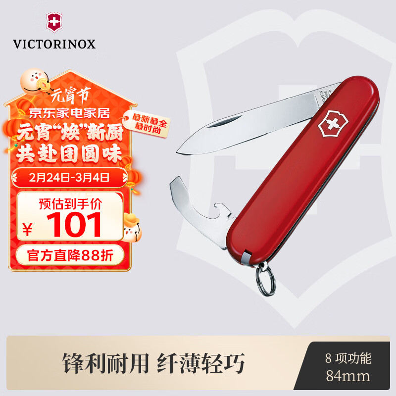 维氏瑞士军刀羽量拳击手8项多功能水果刀刀折叠刀红色0.2303