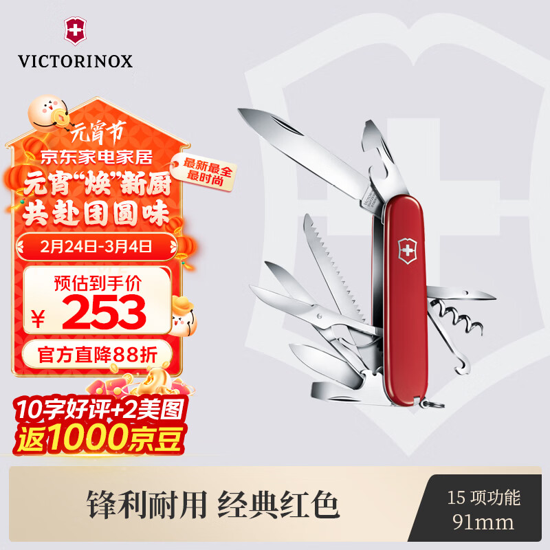 维氏瑞士军刀都市猎人15项多功能水果刀刀折叠刀红色1.3713