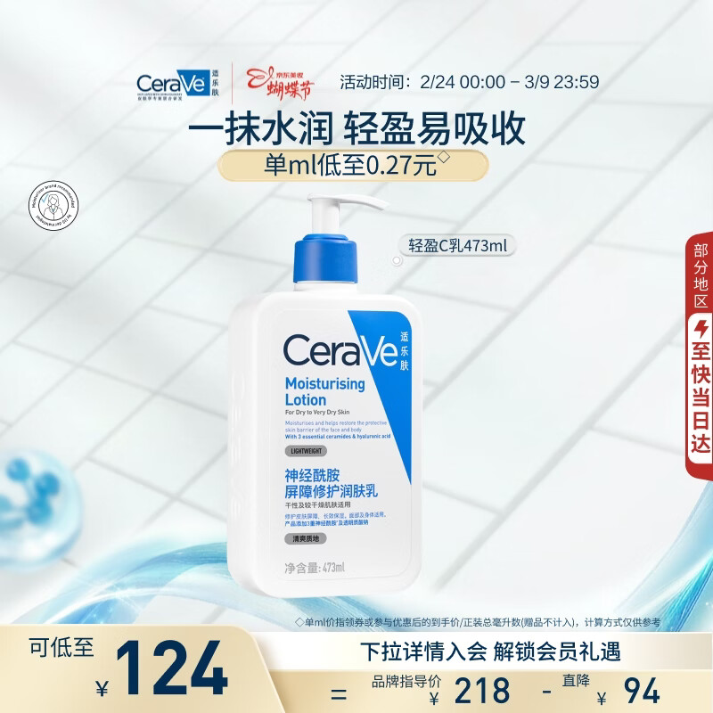 适乐肤(CeraVe)C乳473ml(男士女士生日礼物保湿补水乳液身体乳面霜随机发货)