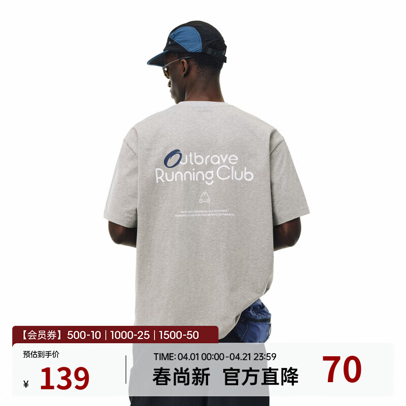 FPA凉感运动印花短袖夏季新款潮流圆领宽松休闲复古情侣半袖t恤男 花灰色 L