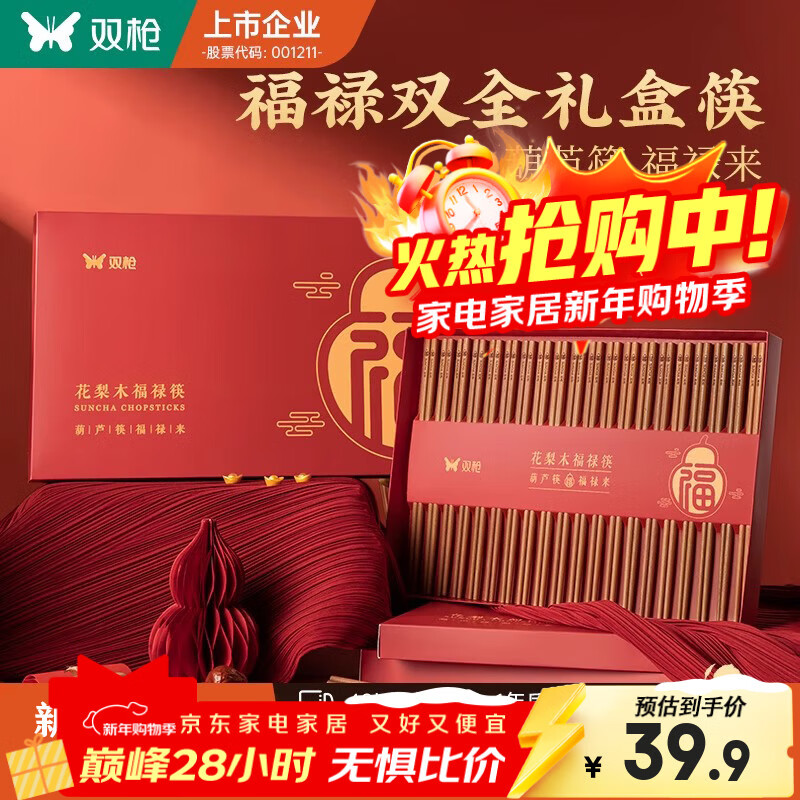 双枪福禄筷子家用2025新款筷子豪华过年送礼礼盒礼物走亲戚高档 20双【花梨木筷】福禄双全