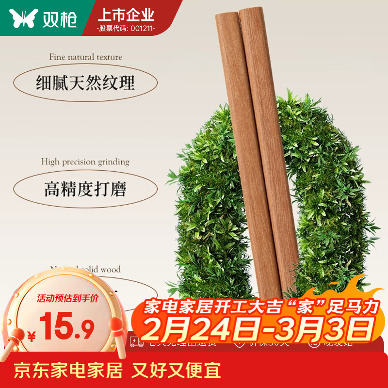 双枪暴富筷木筷子高档筷中式筷创意防霉无漆无蜡实木筷国潮筷 10双【花梨木筷】