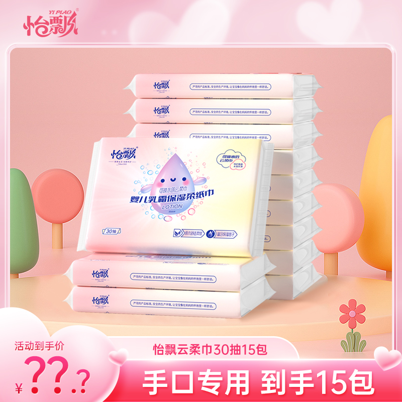 怡飘保湿云柔巾15包婴儿乳霜保湿超柔抽纸巾宝妈推荐清洁抽纸