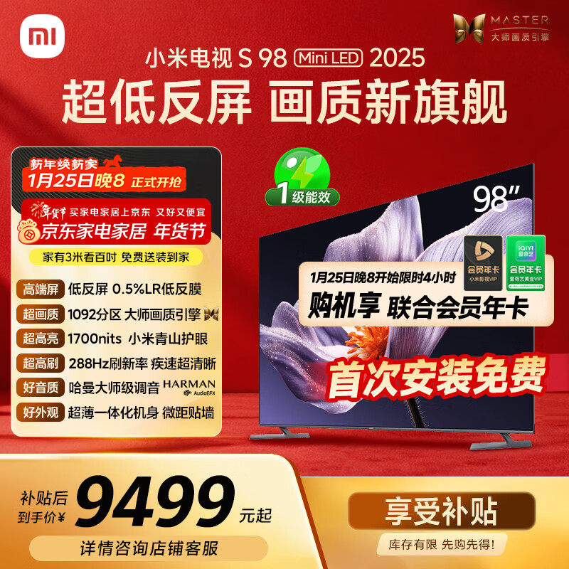 СÃ×£¨MI£©µçÊÓS98 MiniLED Äê¶ÈÐÂÆ· 98Ó¢´ç µÍ·´ÆÁ1092·ÖÇø1700nits ¡¾°ü¹Ì¶¨¹Ò¼Ü°²×°¡¿ L98MB-S