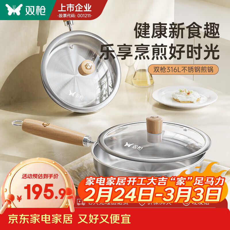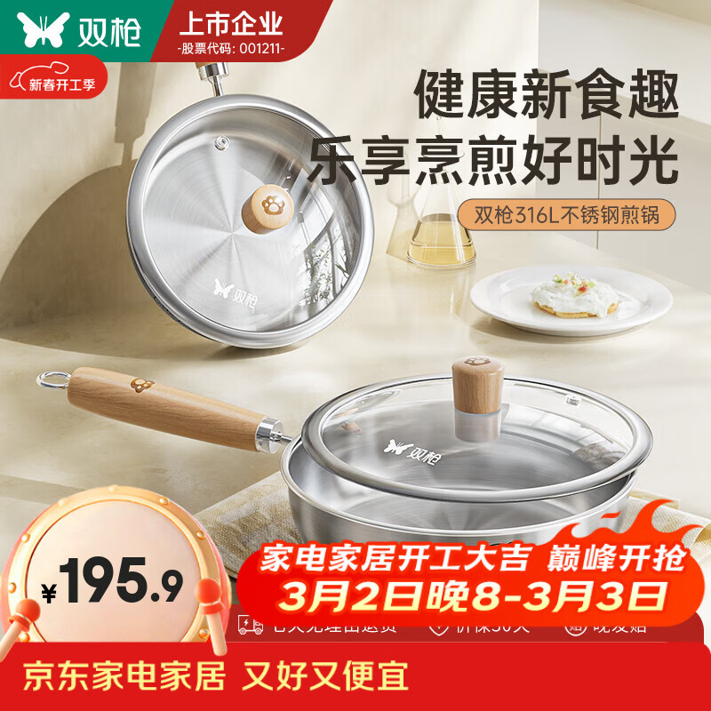 ˫ǹ316Lƽµ×¹ø²»Ðâ¸Ö¹ø¼ÒÓúñµ×ÎÞÍ¿²ã²»Õ³¹ø»§Íâ¹ø¾ßÉî¼å¹ø ¡¾»î¶¯¿î¡¿´óºÅÓиÇ26cm