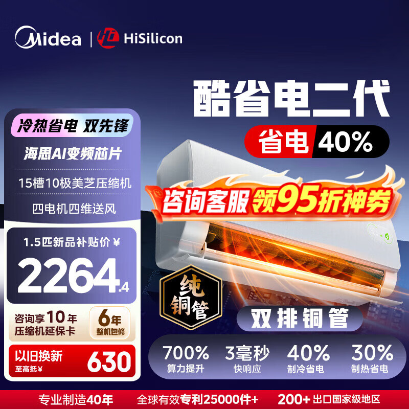 ÃÀµÄ¿Õµ÷¹Ò»ú¿áÊ¡µç¶þ´ú´ó1.5Æ¥¿áÊ¡µçproÐÂÒ»¼¶ÄÜЧ1Æ¥±äƵÀäů¼ÒÓÃÎÔÊÒ±Ú¹Òʽ¹ú¼Ò¼Òµç²¹ÌùÒԾɻ»Ð ´ó1.5Æ¥ ¿áÊ¡µç¶þ´úÊ¡µç40%