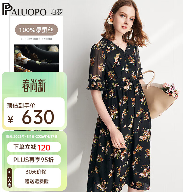ÅÁÂÞ£¨PALUOPO£©Ïļ¾ÕæË¿Á¬ÒÂȹ100%É£²Ï˿Ůװ¸ß¶ËvÁìСË黨ÇáÉÝС¸ö×ÓÆøÖÊ´©´î ºÚÉ« M (160/84A)