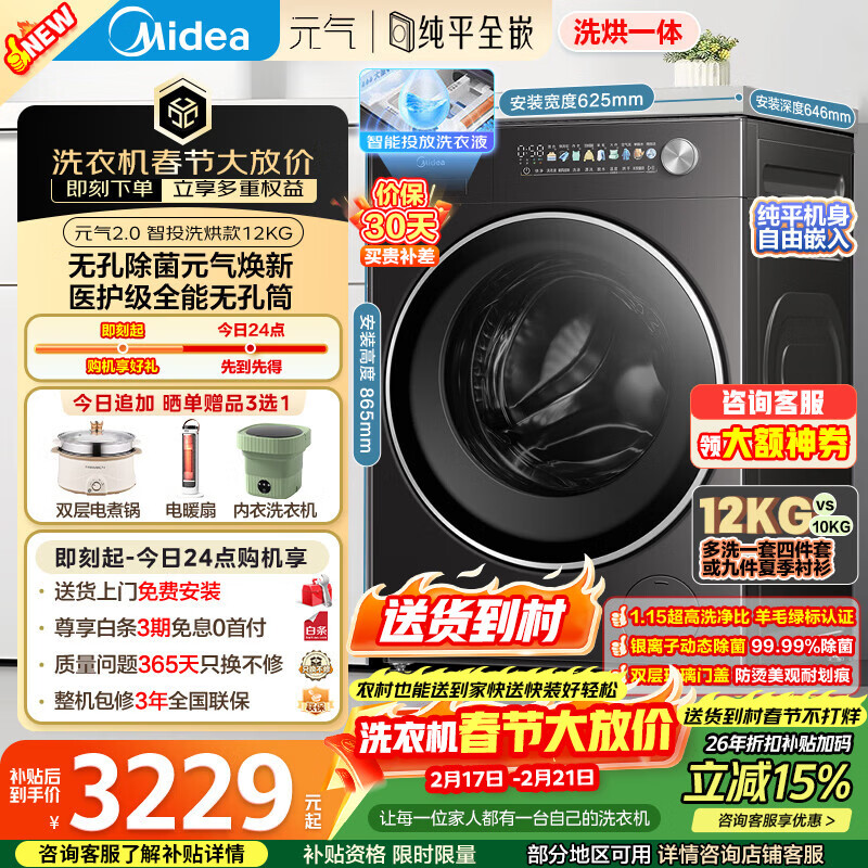 ÃÀµÄ£¨Midea£©ÔªÆø2.0 ¹öͲϴÒ»úÈ«×Ô¶¯ ´øºæ¸ÉÏ´ºæÒ»Ìå 12KG´¿Æ½´óÈÝÁ¿ ÖÇͶ MD12S30T ÒԾɻ»Ð ¹ú¼Ò²¹Ìù