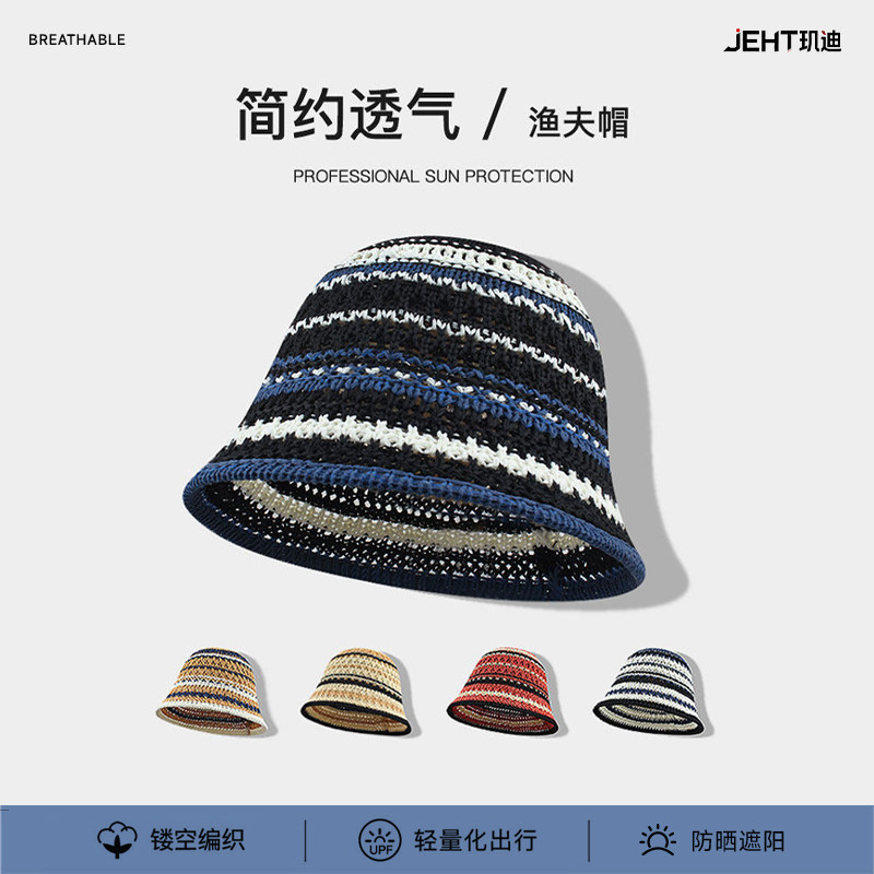 镂空编织四季防晒帽遮阳帽草帽渔夫帽女夏季薄款透气水桶帽盆帽