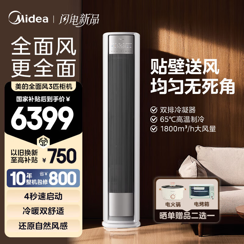 美的空调 全面风 风尊二代 空调立式柜机 客厅 变频冷暖 一级能效 以旧换新 国家补贴20%空调 3匹 一级能效 25年新款 全面风