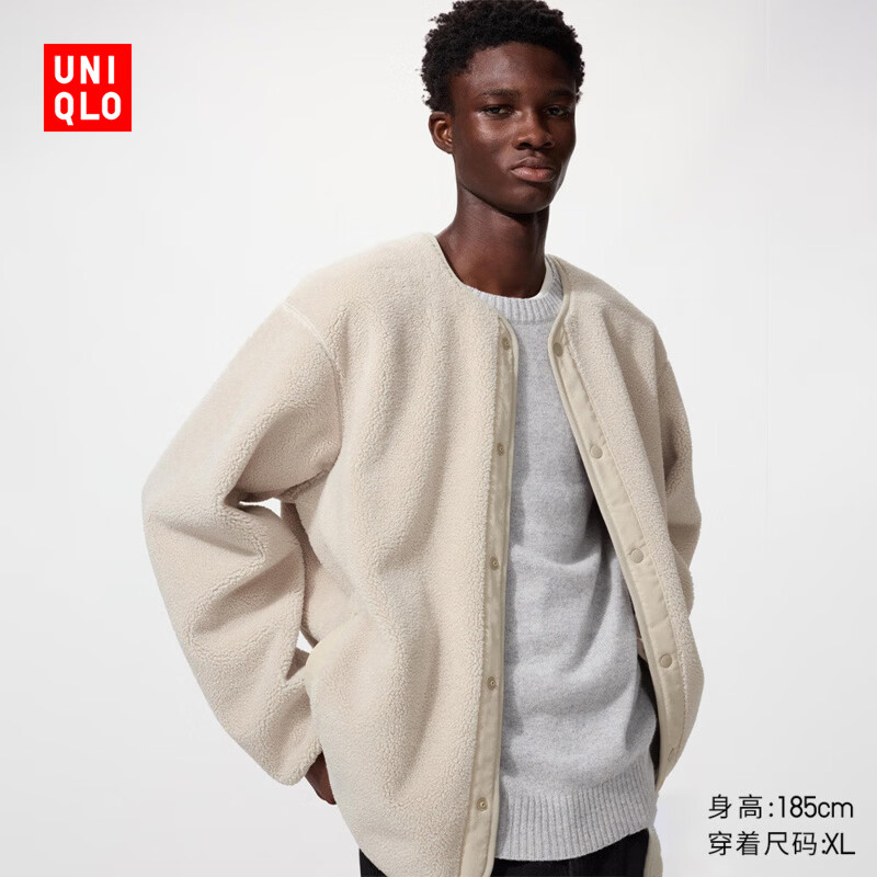 优衣库男装防风仿羊羔绒摇粒绒开衫/长袖外套481183 30 浅米色 XL /180/108B