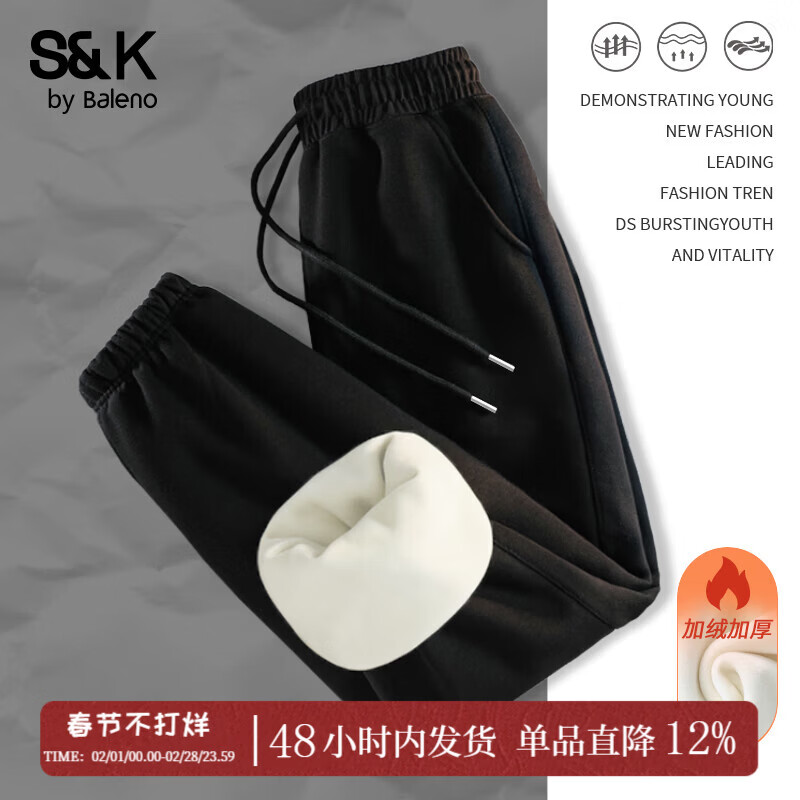 班尼路S&K系列加绒裤子女装保暖束脚裤秋冬新款重磅小个子收脚运动裤10 黑#纯色 【加绒保暖】 XL